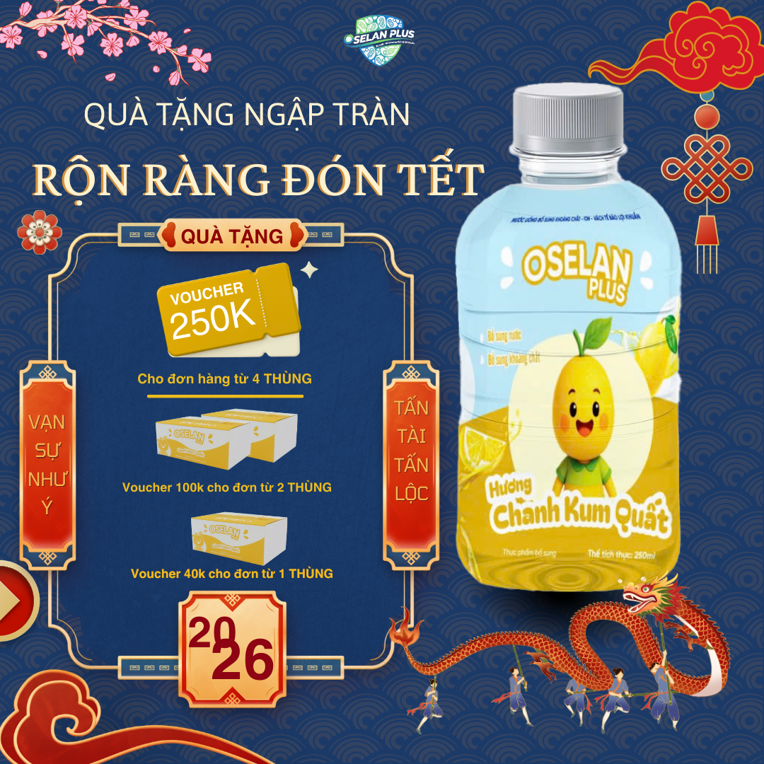 Oselan Plus vị Chanh Kum Quất 250mL là thức uống bù nước – bù điện giải hiệu quả, giúp cơ thể nhanh chóng phục hồi khi mất nước do sốt nhẹ, mệt mỏi, vận động nhiều, ra mồ hôi hoặc thời tiết nắng nóng kéo dài.